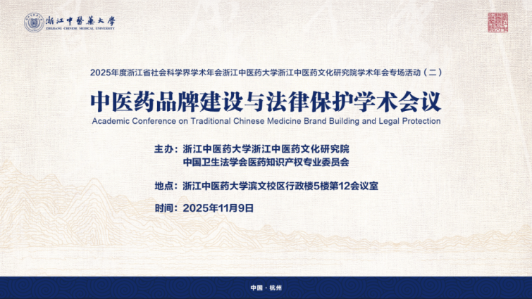 2025年11月9日,中医药品牌建设与法律保护学术会议在浙江中医药大学滨文校区行政楼23号楼5楼12会议室召开。会议旨在深入中医药法治理论与实践研究,推动中医药传承创新和中医药产业高的质量发展。会议由浙江中医药大学浙江中医药文化研究院和中国卫生法学会医药知识产权专业委员会共同举办。特邀嘉宾、校外与会嘉宾和校内与会嘉宾30余人参加了本次会议。