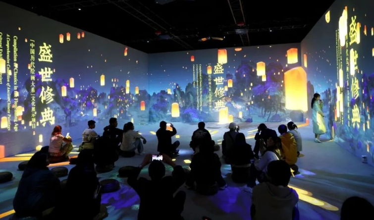 11月6日,2025世界互联网大会乌镇峰会“互联网之光”博览会开幕。图为中国历代绘画大系文化展示项目《光影丹青》 图源:潮新闻客户端